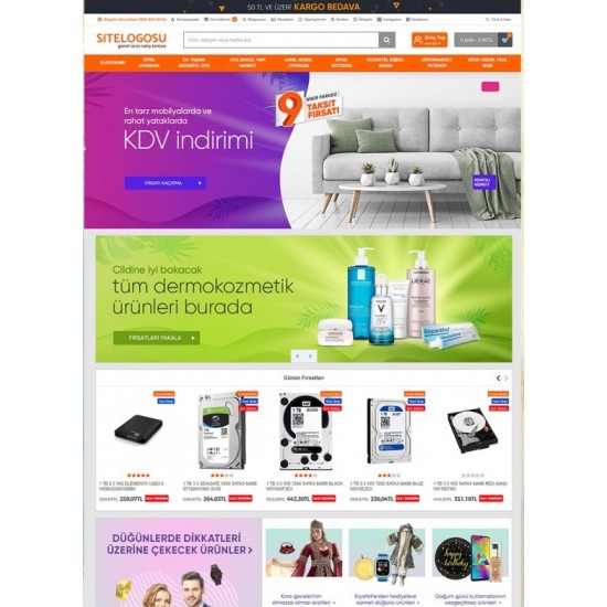 Genel satış sitesi ile kozmetik, ev dekorasyon, güvenlik sistemleri, elektronik gibi bir çok sektörün ürünlerinin satışı yapabilirsiniz.